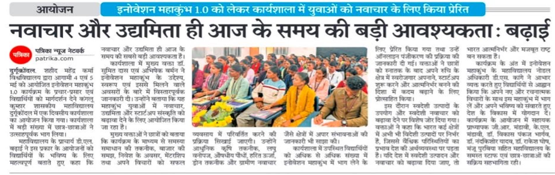 In the session 2018-19 , the name of the college was changed. Govt New College Durgukondal Became “Kanglu Kumhar Govt. College Durgukondal.” The College is named after the freedom fighter of the region, Kanglu Kumhar ji, who devoted his whole life for the freedom of the country.